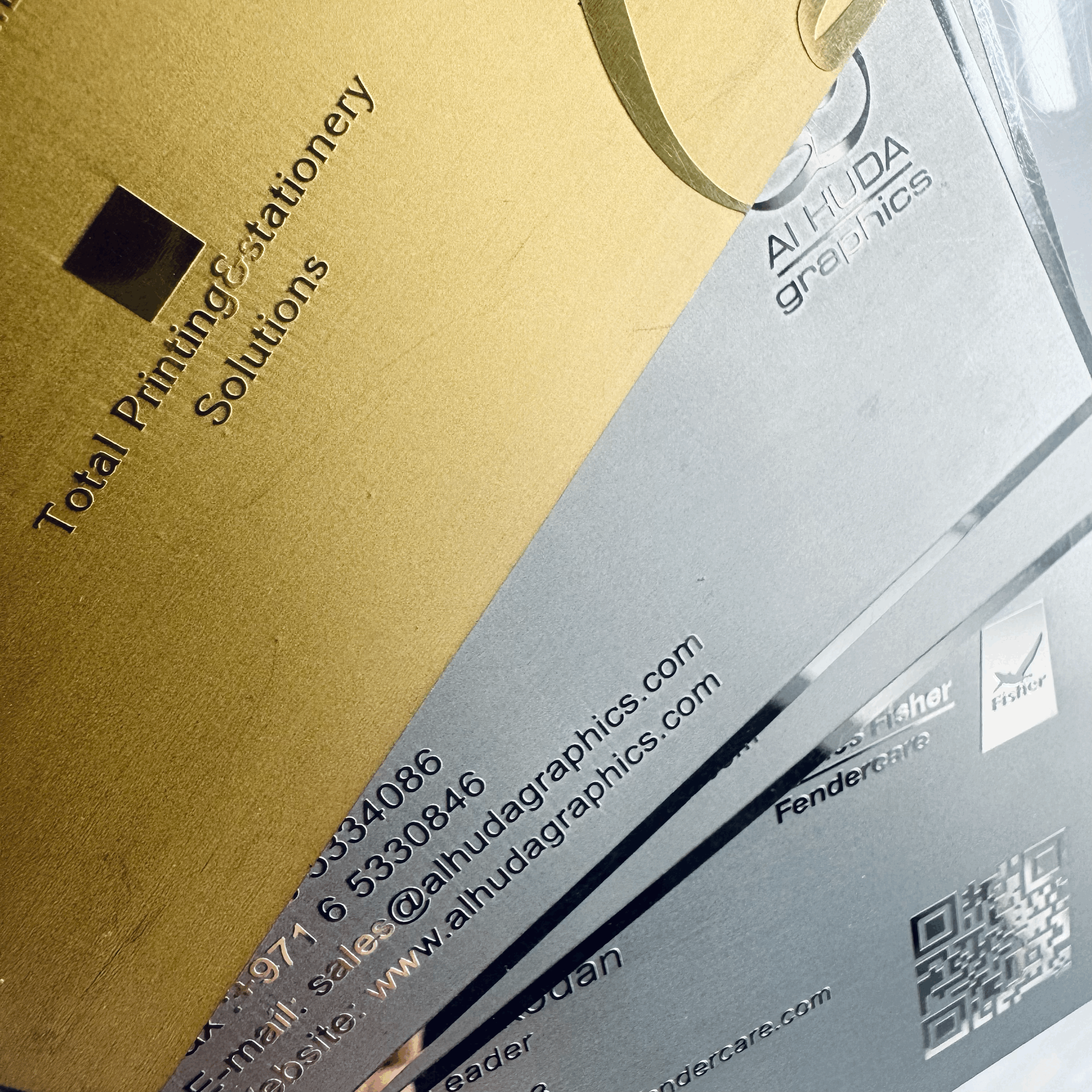 Luxury business cards with premium finishes like foil, UV, embossing, and layered designs for standout branding.
